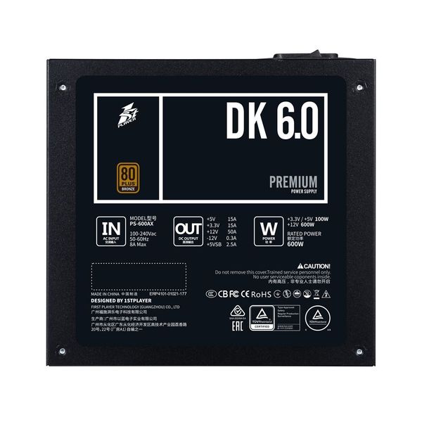 首席玩家-1stPlayer DK PREMIUM 6.0 600W 80 PLUS 銅牌 火牛 110~250V Full Range 電源供應器