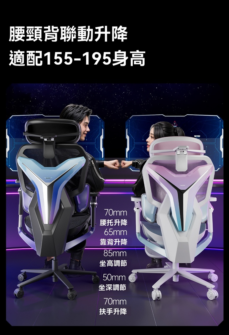 支援身高 155 公分至 195 公分的用戶