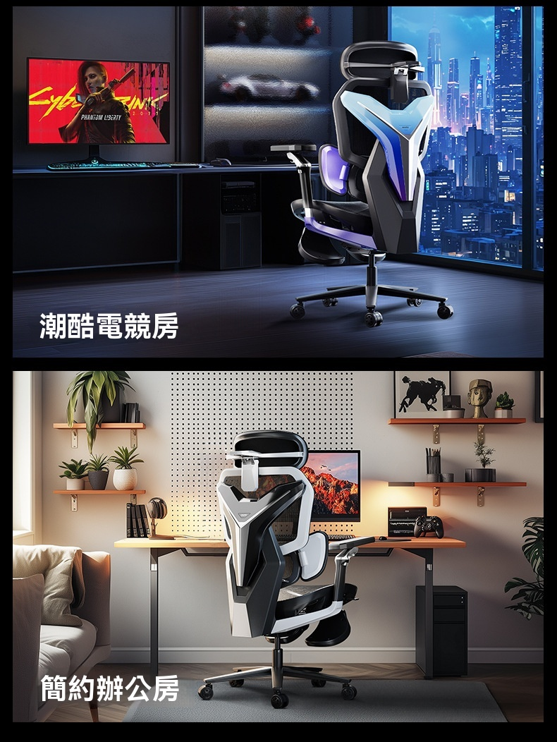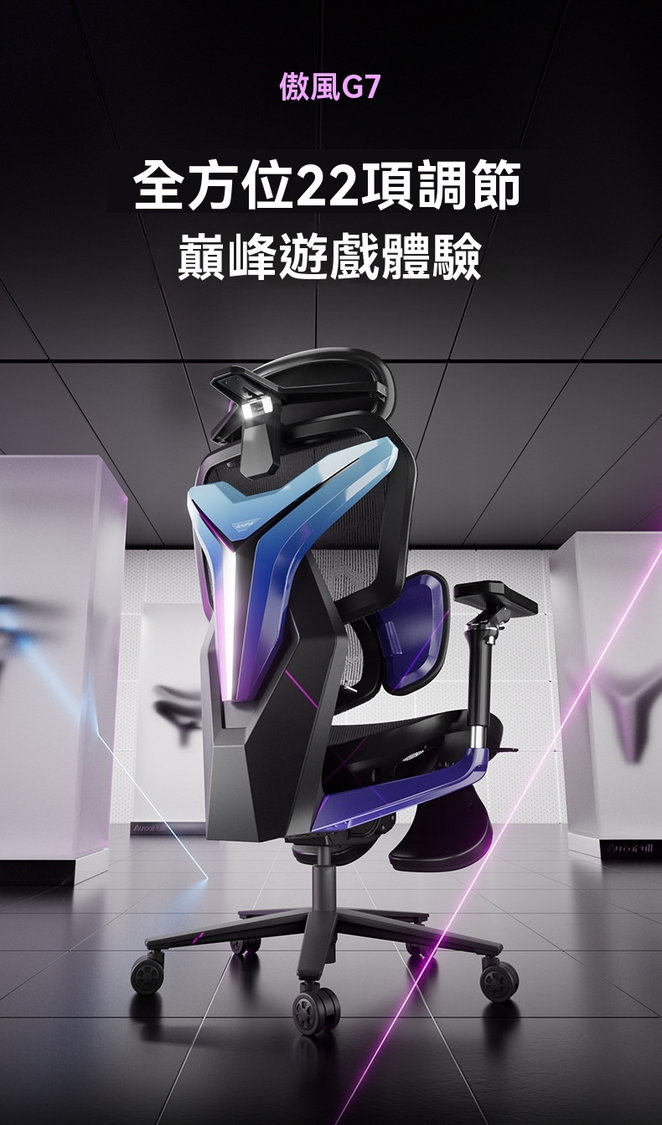 傲風-Autofull G7 人體工學遊戲椅連腳托 [黑色] 動態調節追腰電競椅 電腦椅 追腰網櫈