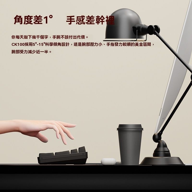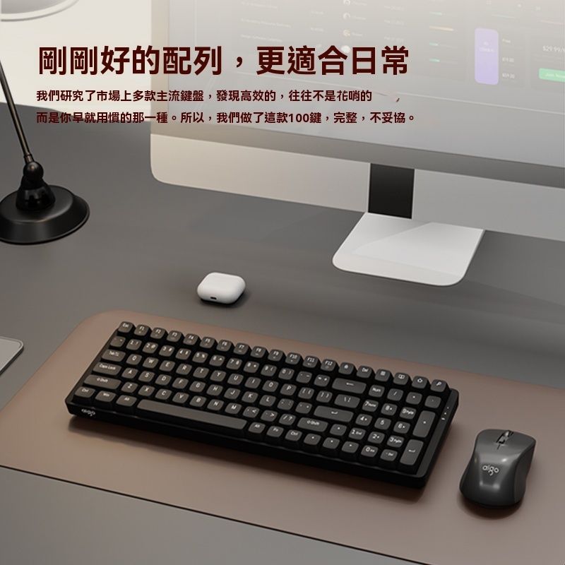 設計:鍵盤採用接近全尺寸的 100 鍵緊湊佈局,節省桌面空間。