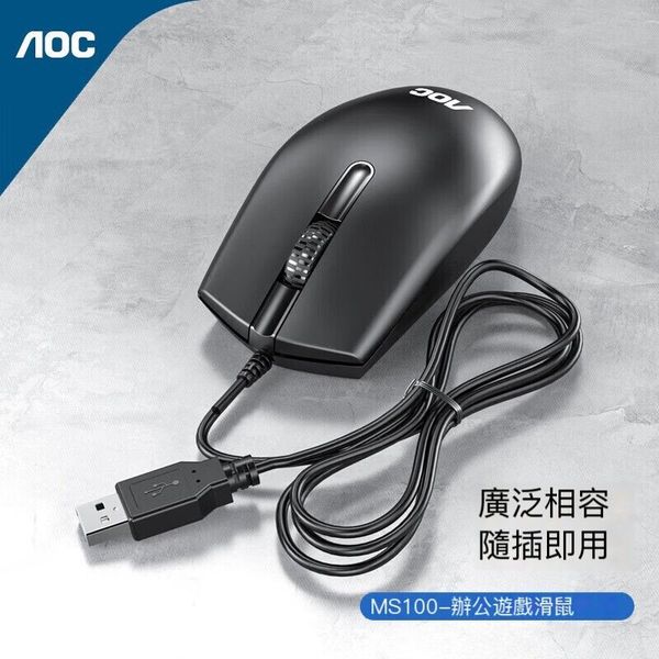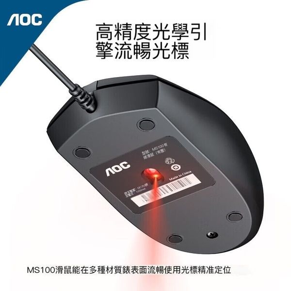AOC-MS100 1200dpi USB 有線光學滑鼠 人體工學設計 [平行進口]