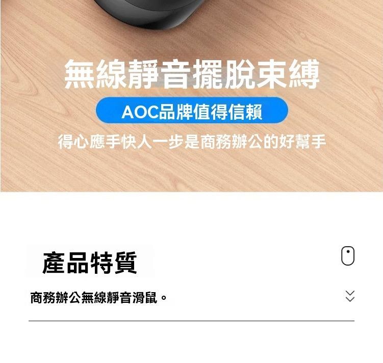 AOC-MS320 1600dpi 無線光學滑鼠 人體工學設計 USB接收器 [平行進口]