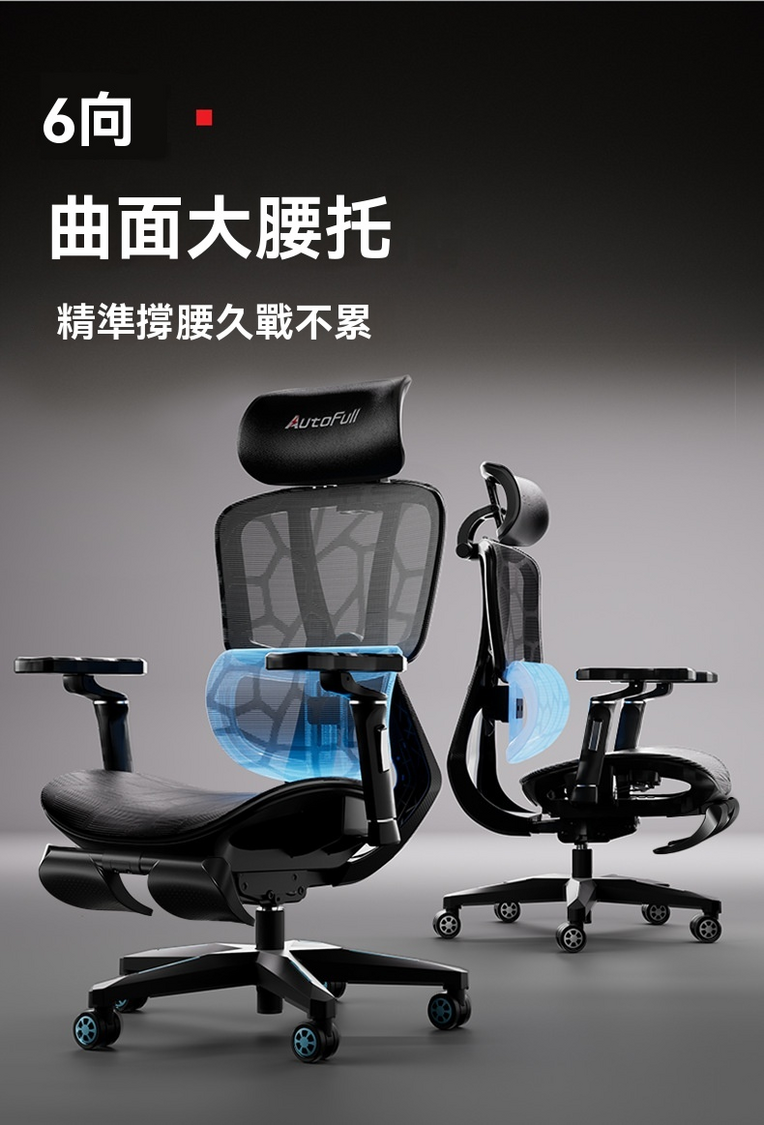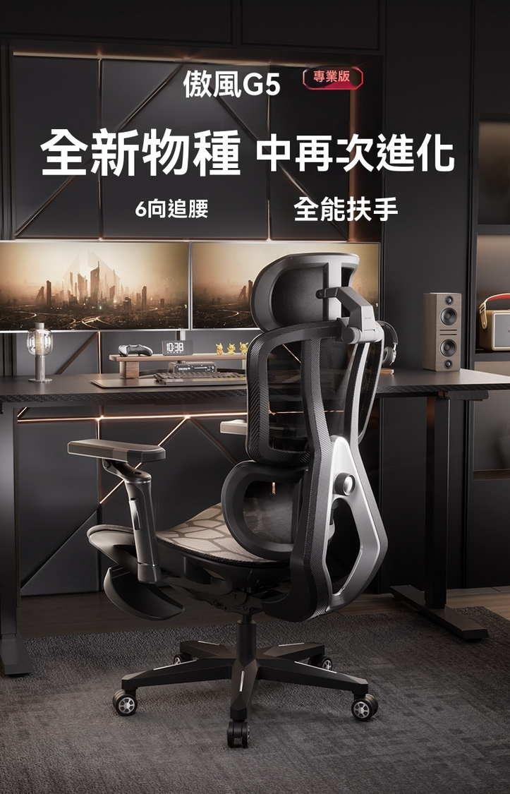 傲風-Autofull G5 Pro 人體工學網椅 360扶手 重力感應線控底盤電競椅 電腦椅 追腰辦公椅 遊戲椅 AFC4 [銀鋒甲] 連腳托版