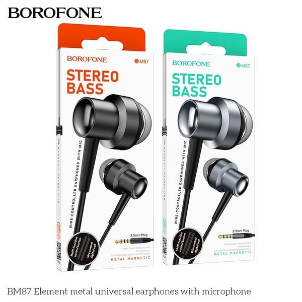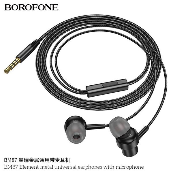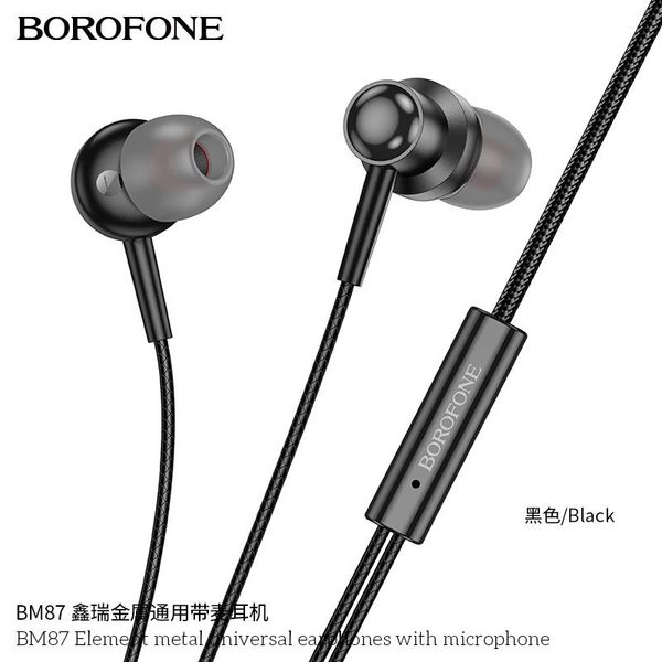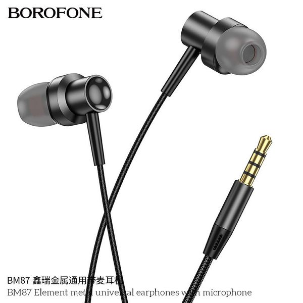 BOROFONE-BM87 金属3.5mm通用耳機連Mic-線控 [黑色]