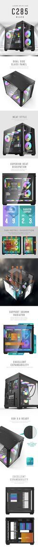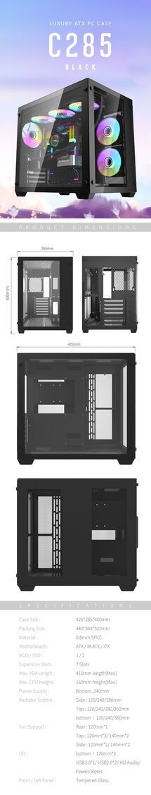 darkFlash-C285 Luxury ATX PC Gaming Case 黑色電腦機殼 不包括風扇
