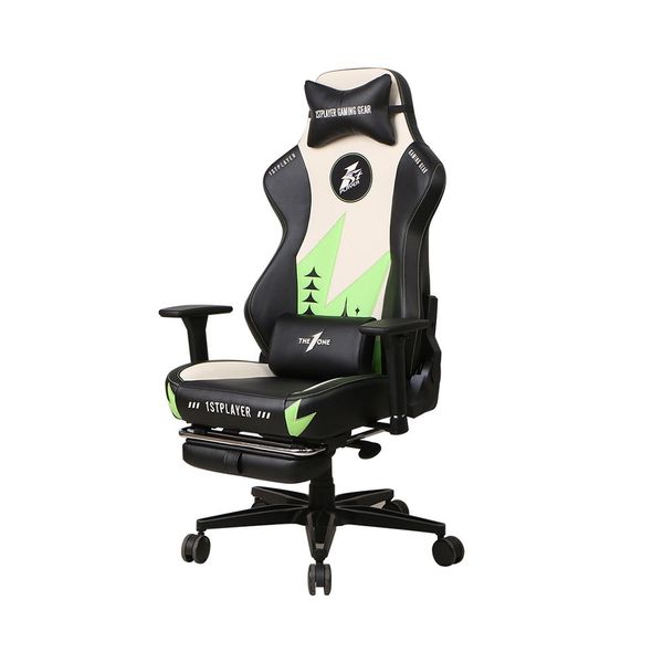 首席玩家-1stPlayer DUKE XL 高級電競椅 [黑白綠色] 連伸縮腳托 3D扶手 腰部調節 辦公椅 電腦凳