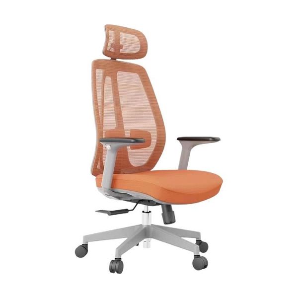 LAVA-人體工學護腰網凳 [橙色] 雙翼腰枕灰色邊 升降扶手電腦椅連頭枕 色彩主義系列辦公椅 #826