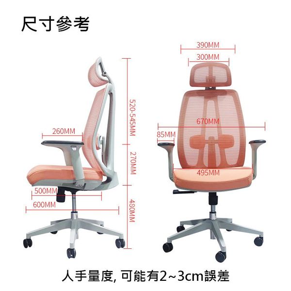 靠背爲優質塑膠背筐,耐磨舒適透氣頤達網布,可調活動腰托;