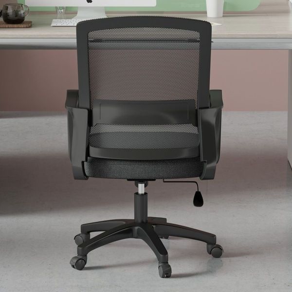 LAVA-電腦椅 固定扶手辦公椅 職員椅 人體工學靠背仿身曲線設計 透氣網布椅 [黑色] 電腦凳 黑色網凳