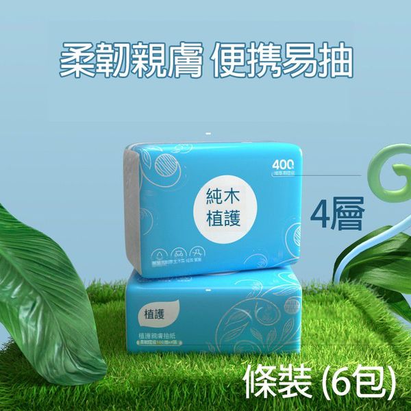 CHEERFUL-植護 經典藍 原木壓花抽紙 軟包裝400張 128*175mm 4層面紙 條裝(6包) (不含熒光劑)