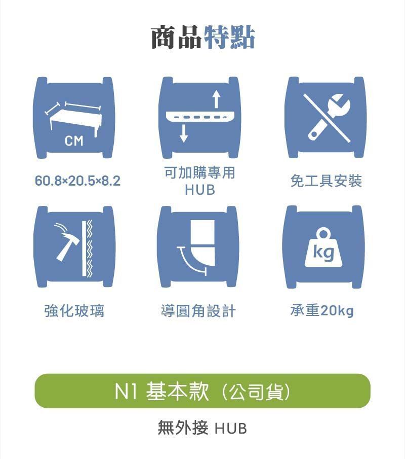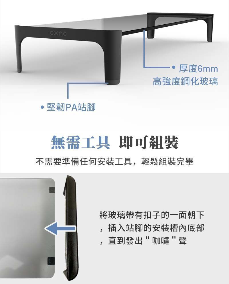 LAVA-CXNO 螢幕支撐架 N1 黑色 基本款 強化玻璃增高架 60.8x20.5x8.2cm