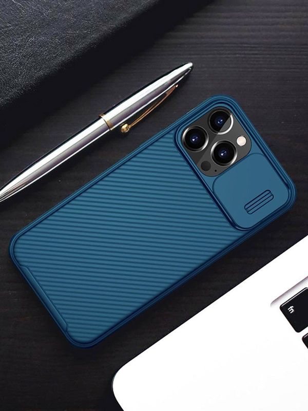 NILLKIN-iPhone 13 Pro 6.1" Case (藍色) 加鏡頭滑蓋保護殼 四角氣囊防摔手機保護殼 黑鏡Pro系列