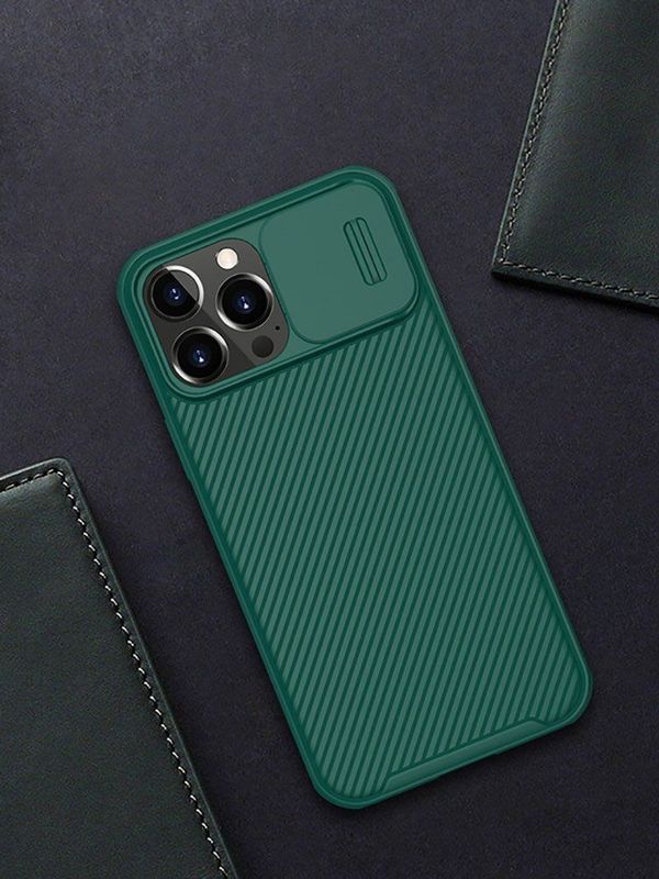 NILLKIN-iPhone 13 6.1" Case (綠色) 加鏡頭滑蓋保護殼 四角氣囊防摔手機保護殼 黑鏡Pro系列