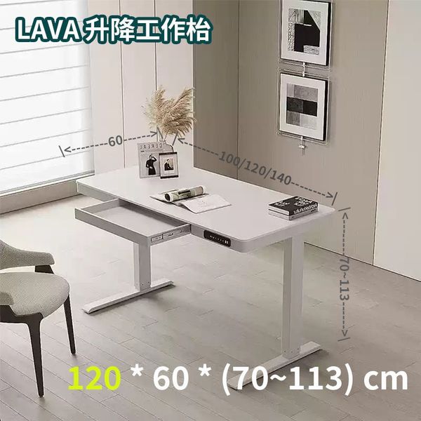 LAVA-電動升降工作檯 連抽屜 暖白色 120*60*(70~113)cm 升降書枱 / 電競枱