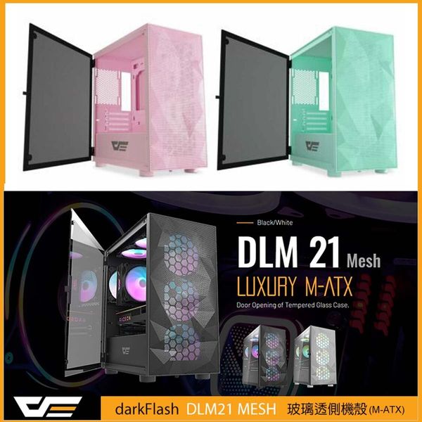 darkFlash-DLM21 MESH M-ATX (黑色) Mini Tower 金属網 附贈 4* 12cm RGB 風扇 電腦機殼 機箱