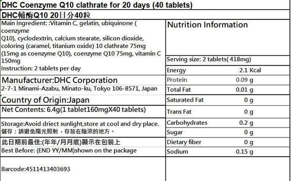 DHC-輔酶 Q10 輔助酵素 20日分40粒 包接體 #4511413403693【平行進口】