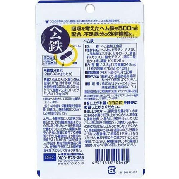 DHC-血紅鐵元素精華膠囊 (20日份量) 40粒 [平行進口] #4511413406489