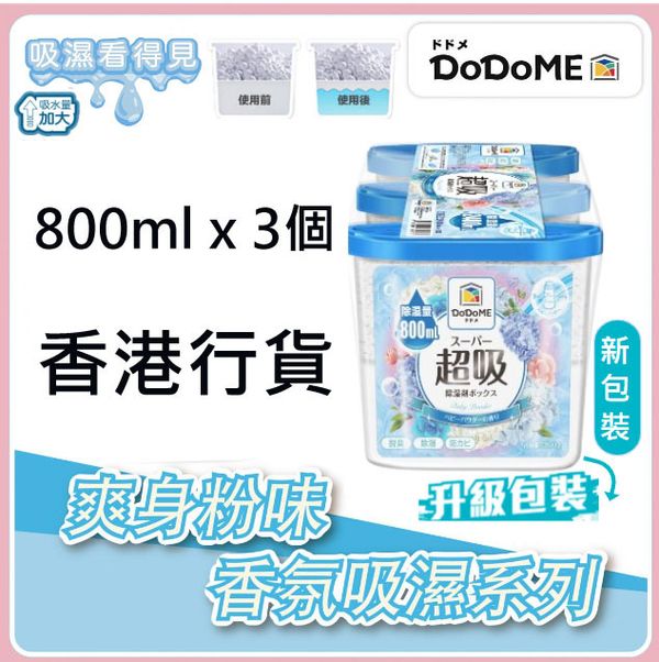 DoDoME-超級吸濕盒 (爽身粉香) 800mL 360g x 3個 / 防菌 / 除臭 / 四季適用