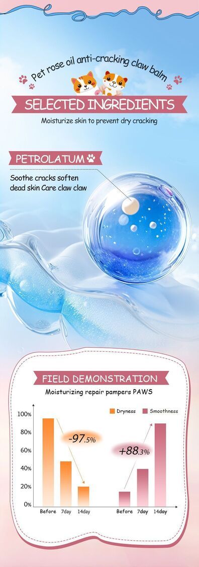 深層滋養,防止乾燥龜裂,呵護寵物爪子,告別乾燥、粗糙和死皮,打造粉嫩柔軟的寵物爪。