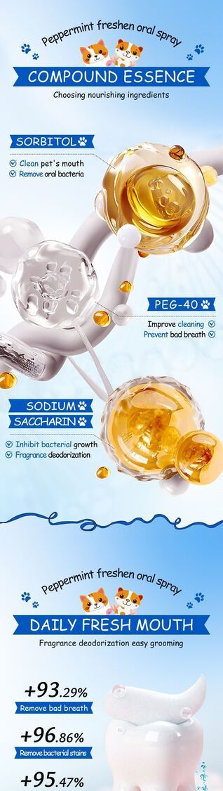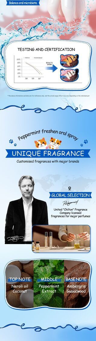 成分溫和,易於噴灑,有效清潔口腔,平衡口腔菌群,去除異味,清新口氣。