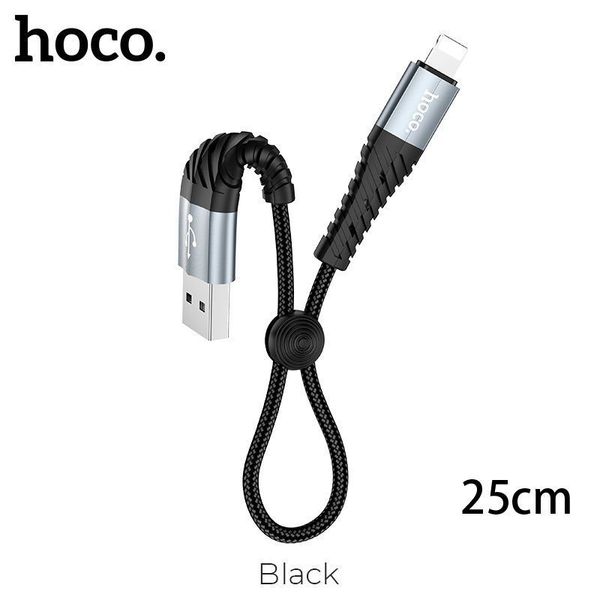 hoco.-Lightning 快充線 25cm USB 接口 2.4A 黑色防彎快速充電及數據傳輸 X38
