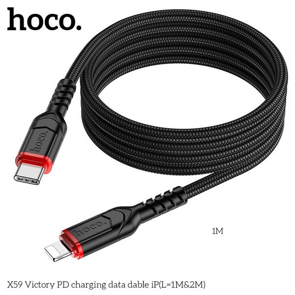 hoco.-Lightning 快充線 1米 Type-C PD 20W 接口 3A X59 黑色防彎快速充電及數據傳輸