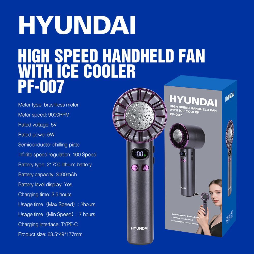 現代-高速手持制冷風扇 PF-007 100檔 LED 數字顯示風速 手提風扇 製冷冰敷