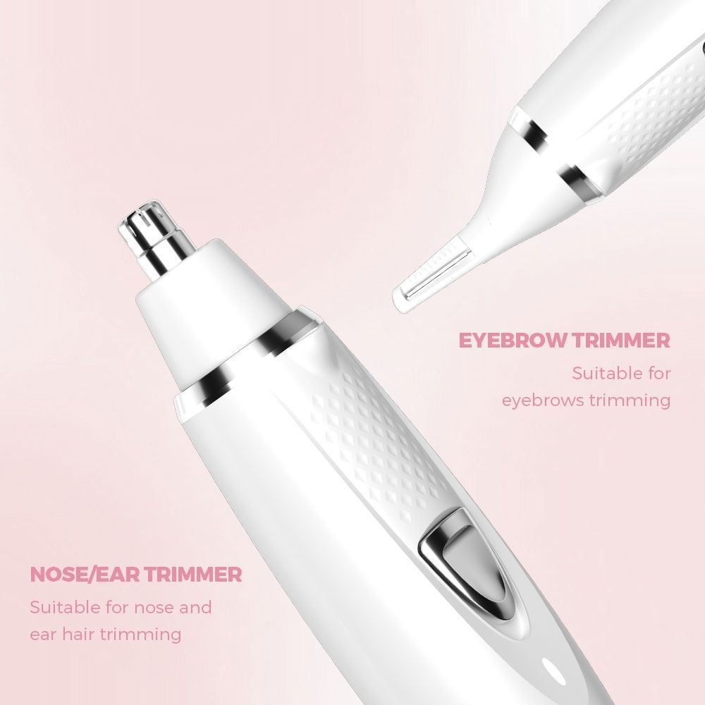 使用現代 PHT-089 四合一女士除毛套裝,體驗順滑輕鬆的除毛體驗。這是一款專為現代女性設計的多功能除毛工具。這款時尚的設備包含四個可拆卸刀頭——臉部刮鬍刀、眉毛修剪器、鼻毛修剪器和身體刮鬍刀——非常適合臉部、腿部、腋下和比基尼線的剃毛。它配備 5500rpm 高速馬達和 500mAh 可充電電池,透過 Type-C 介面充電 1.5 小時即可使用長達 90 分鐘。其 IPX5 防水等級確保安全清潔,符合人體工學的設計確保操作簡單。這款時尚強大的除毛必備品,讓您無論走到哪裡都能自信無毛。