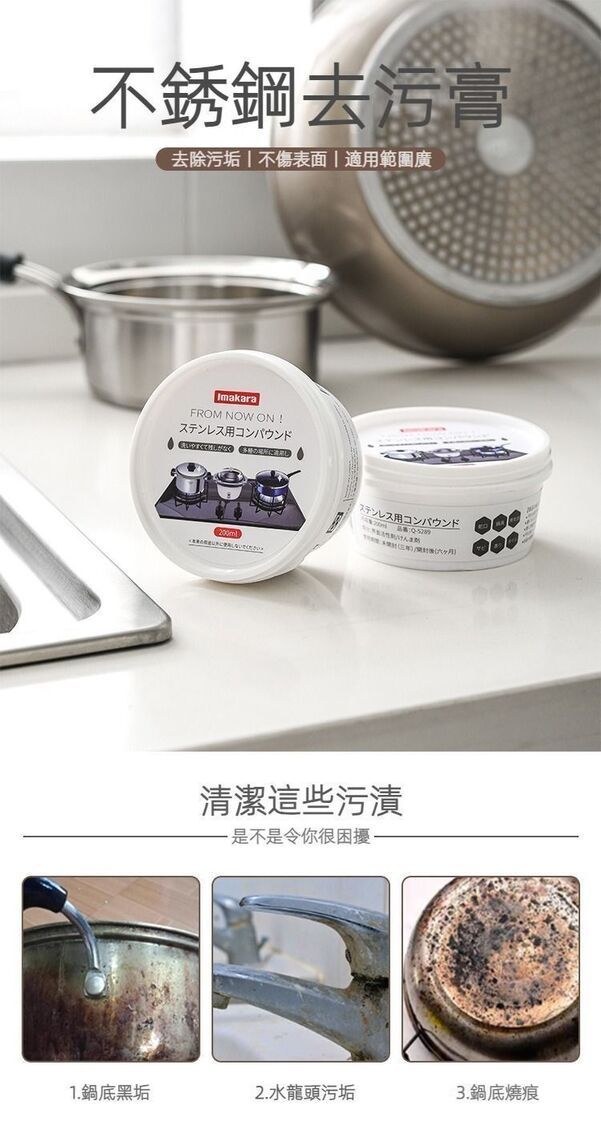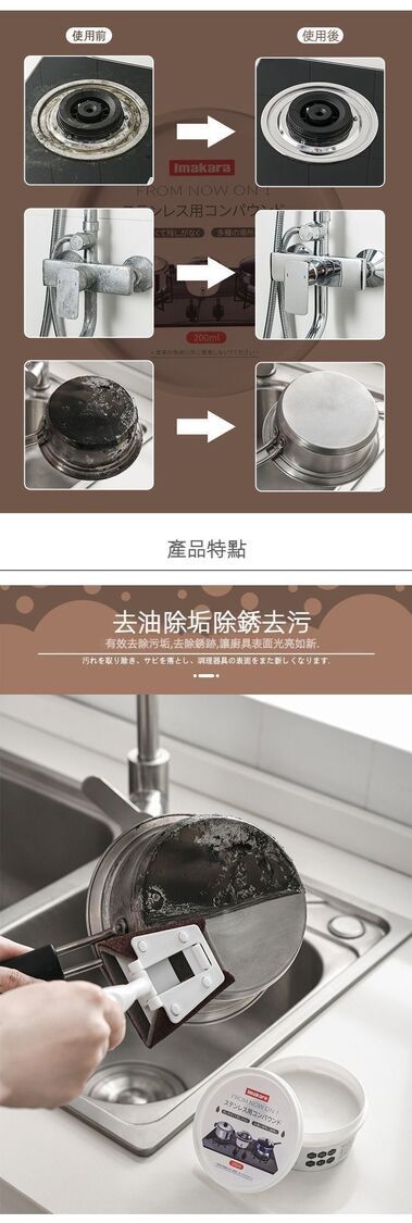 Imakara-日本廚房不鏽鋼清潔膏 油污洗膏 鍋底黑垢去除 除鏽 清潔劑 200ml