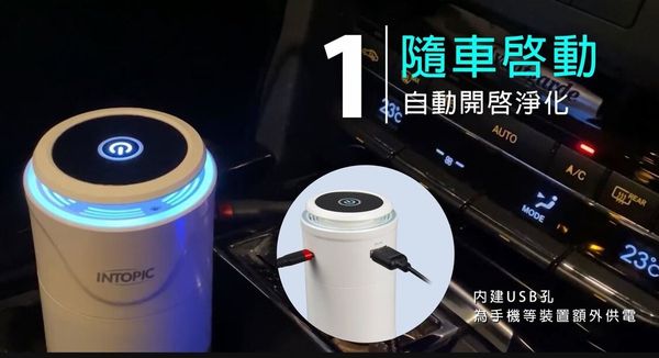 INTOPIC-台灣Intopic AI-100 黑色 高效能雙濾網 HEPA二合一 負離子空氣清新機 車用/座台【香港行貨 一年保養】