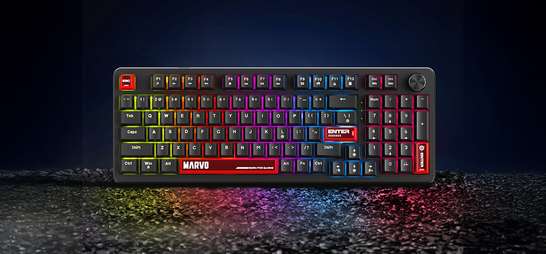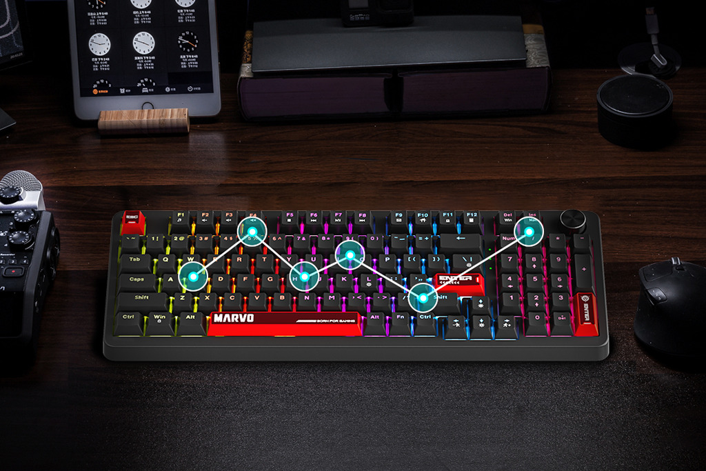 Marvo 遊戲鍵盤擁有鮮豔的 RGB 背光、可自訂的按鍵和時尚的設計,是追求卓越性能和時尚風格的遊戲玩家的理想之選。