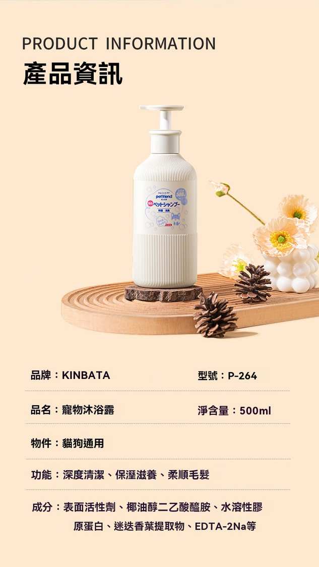 KINBATA-[日本製] 寵物沐浴露 貓狗通用 500ml P-264 [平行進口]
