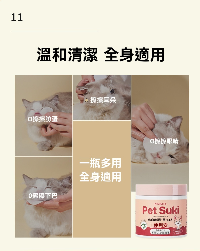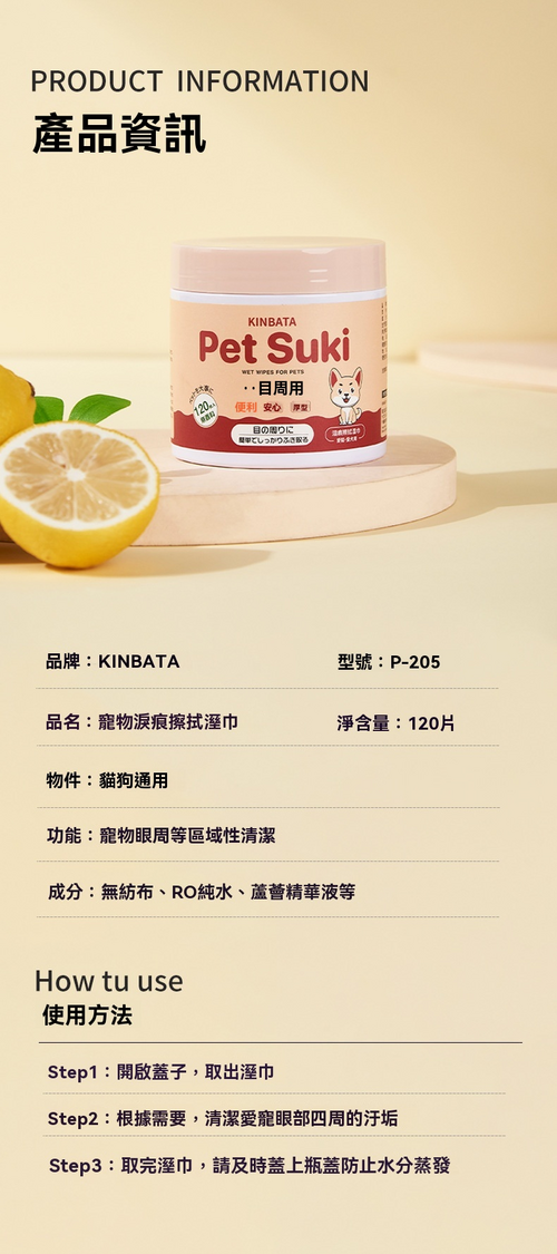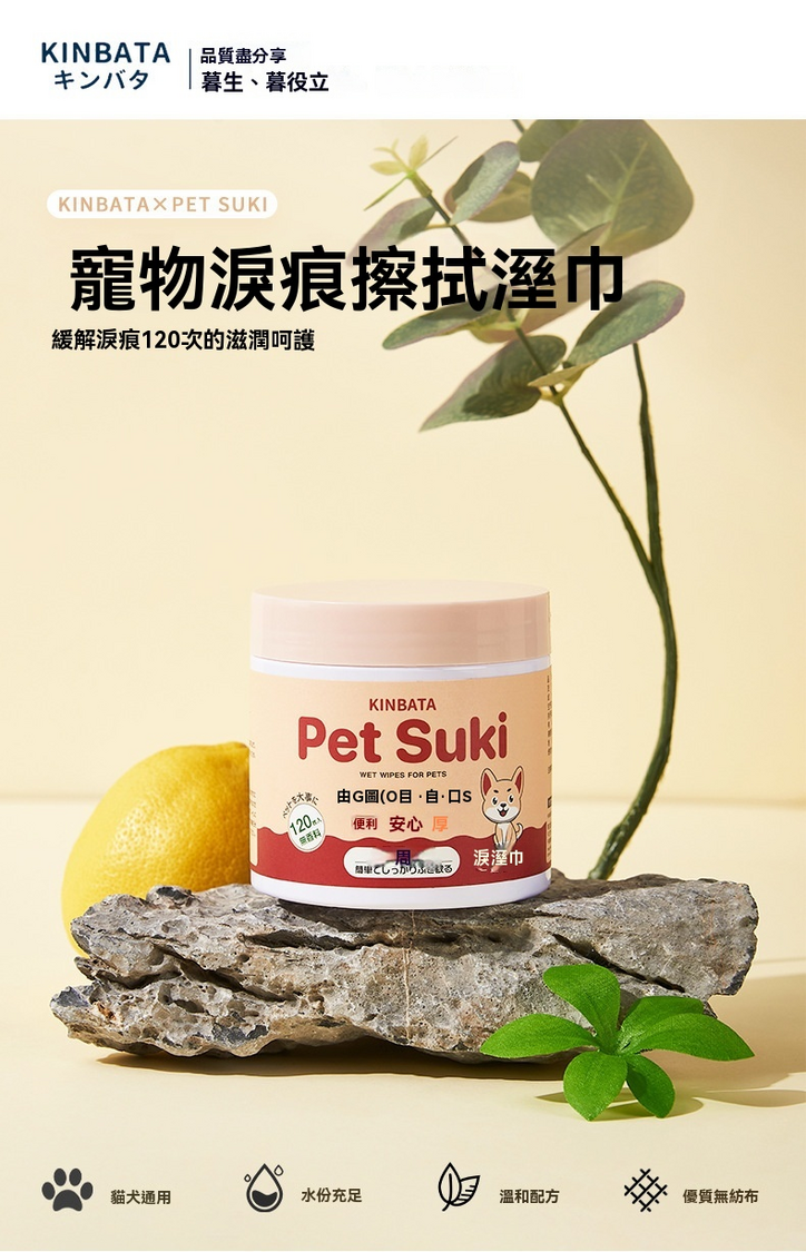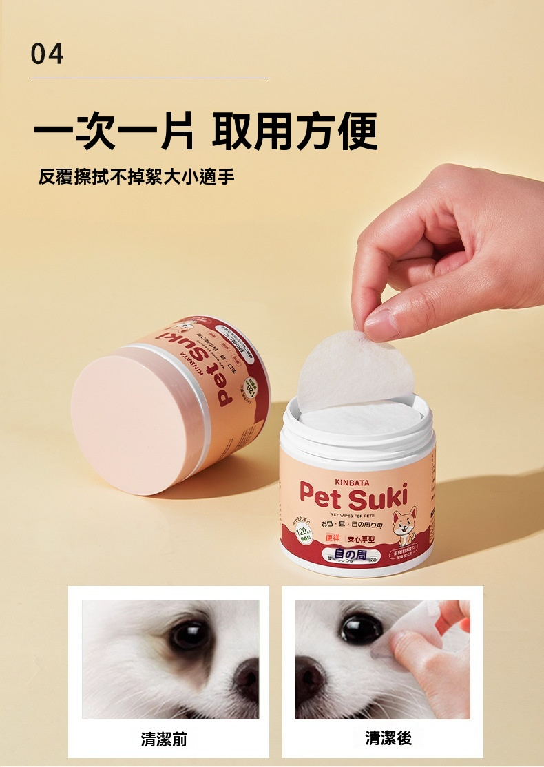 KINBATA-寵物淚痕擦拭濕巾 120枚入無香料 貓狗通用 P-205