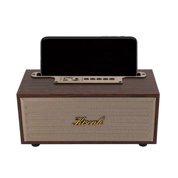 Kisonli-便攜式木質藍芽喇叭 [深棕色] 古典音箱連手機支架 G12A TF/USB/BT/FM/TWS/AUX