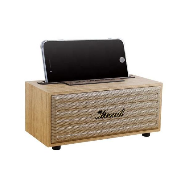 Kisonli-便攜式木質藍芽喇叭 [淺木色] 古典音箱連手機支架 G12A TF/USB/BT/FM/TWS/AUX
