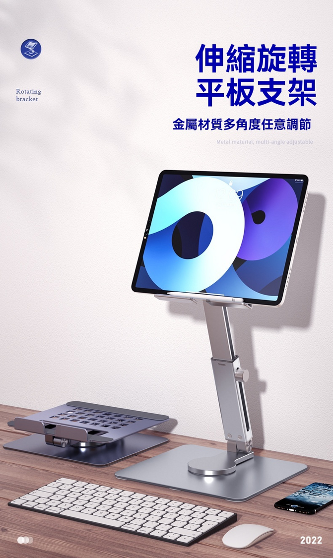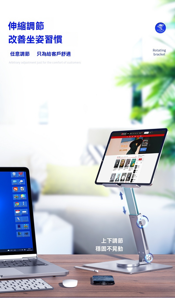 LAVA-鋁合金伸縮旋轉 多角度任意調節 平板電腦支架 [銀色] 升降支架 人體工程學