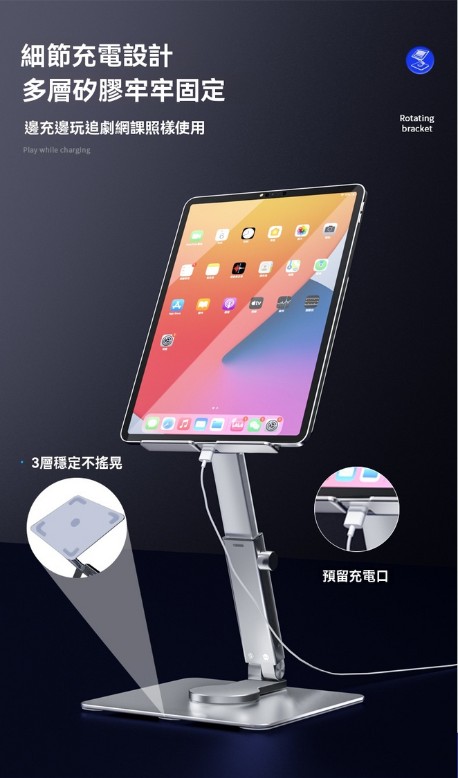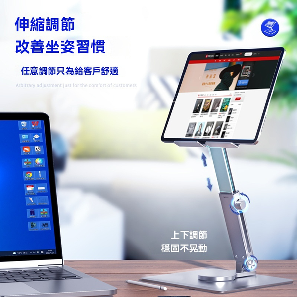 LAVA-鋁合金伸縮旋轉 多角度任意調節 平板電腦支架 [深灰色] 升降支架 人體工程學