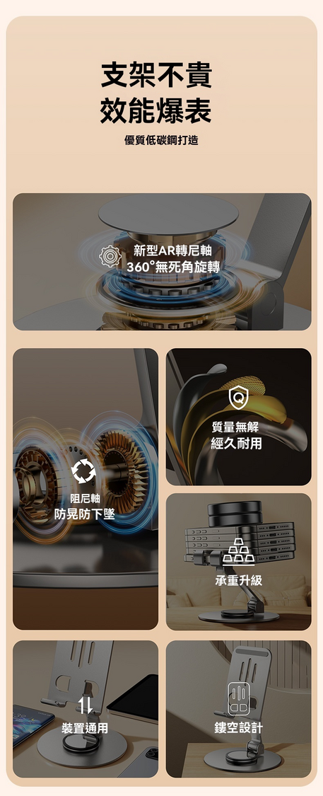 LAVA-金屬手機支架 便攜可折疊360度旋轉 [深空灰] 桌面懶人支架神器
