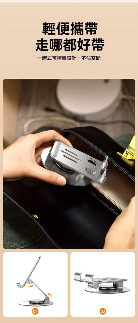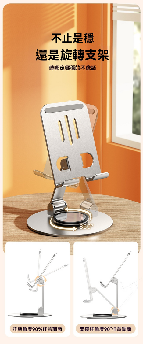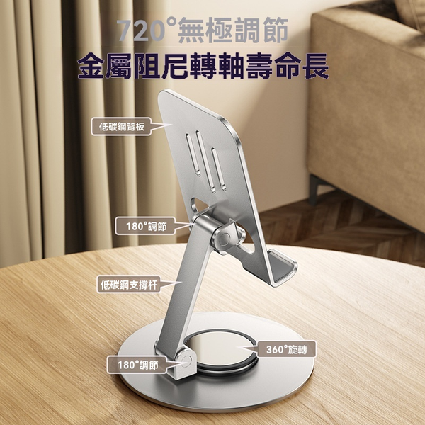 LAVA-金屬手機支架 便攜可折疊360度旋轉 [極光銀] 桌面懶人支架神器