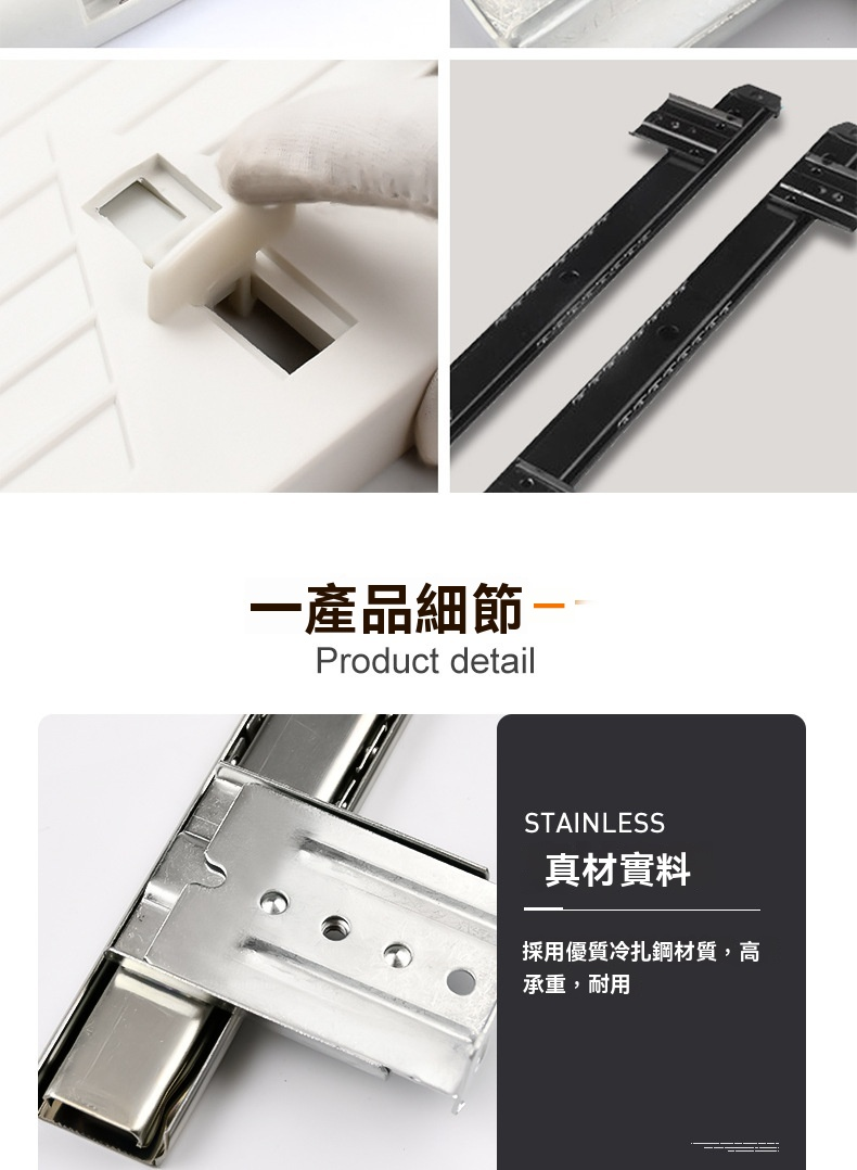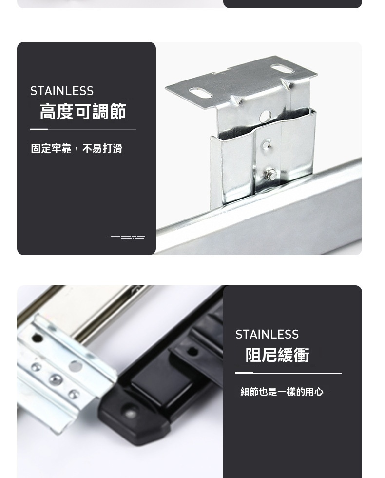 滑軌有4級高度可調節,穩固又耐用。其物料採用實心材質, 保証使用時順暢。