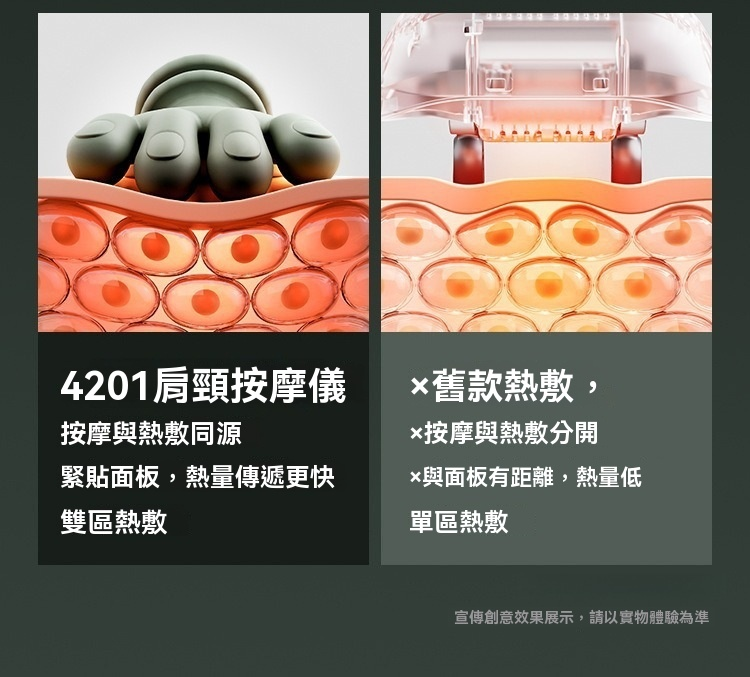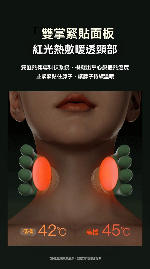 紅光熱敷暖透頸部,雙區熱傳導科技系統,模擬出掌心般搓熱溫度