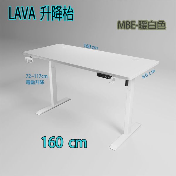 LAVA-暖白色升降辦公枱 160*60*(72~117)cm 電動遊戲枱 升降電腦枱 辦公桌/遊戲桌/電腦桌