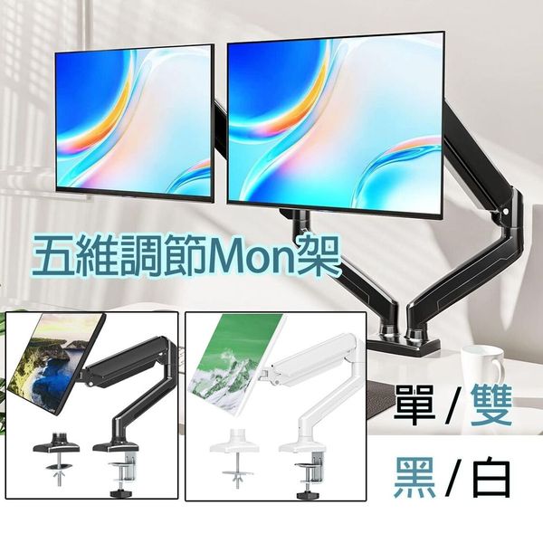 LAVA-五維調節顯示器支架 [黑色單螢幕] 桌面全動態氣體彈簧臂架 適用17~32吋 (Max 9kg)螢幕 VESA 75x75,100x100mm(夾檯/穿孔 兩用)