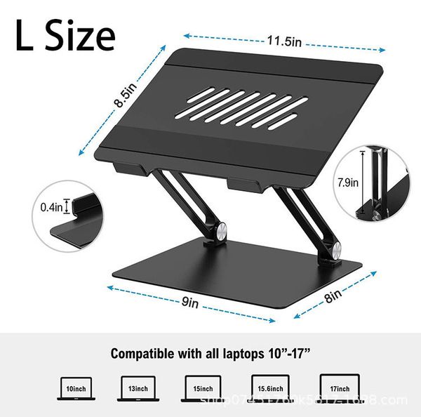 (大) : 300*230*40mm -鋁合金磨砂防刮物料製造 -可摺疊,最高承重12.5KG,適用於17吋或以下手提電腦 -可多角度/升降調教,配合唔同工作環境(由於需保持-平衡穩定結構,調教時需要較大力) -散熱坑糟設計,適合長時間工作 -支架帶有防滑吸震矽膠墊,防止刮花及滑落