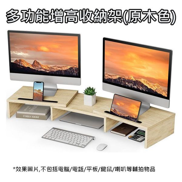 LAVA-木質雙螢幕增高架 [原木色] 顯示器收納置物架 長度可調,可旋轉桌面