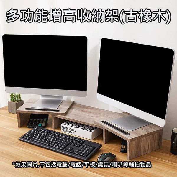 LAVA-木質雙螢幕增高架 [古橡木紋色] 顯示器收納置物架 長度可調,可旋轉桌面