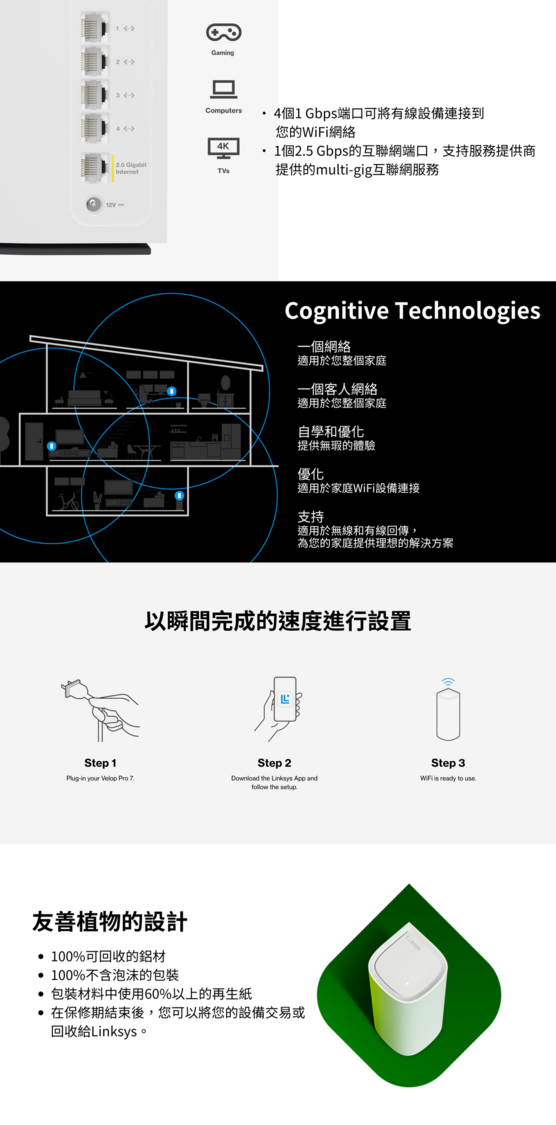 ▪️ Cognitive™ Mesh提供快速安裝,並自動優化您的WiFi網絡