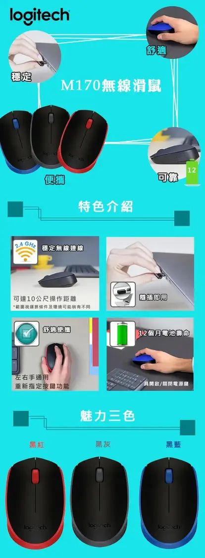 Logitech-M170 Wireless Mouse 無線滑鼠 即插即用 (黑色) [平行進口]