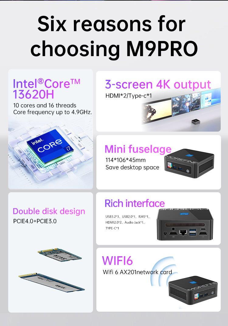 Morefine 摩方 M9 Pro i7-13620H 16G 1TB M.2 WIFI6 BT5.2 WIN11 PRO Mini PC 迷你電腦