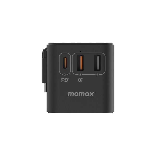 摩米士-1-World+ 70W GaN 3-插口 內建 USB-C 充電線 + AC 旅行充電插座 (黑色) #UA18UKD